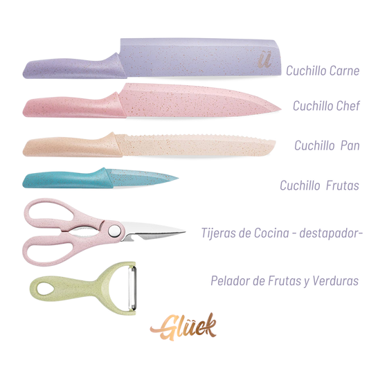Set de Cuchillos de Acero Inoxidable Multicolor x 6